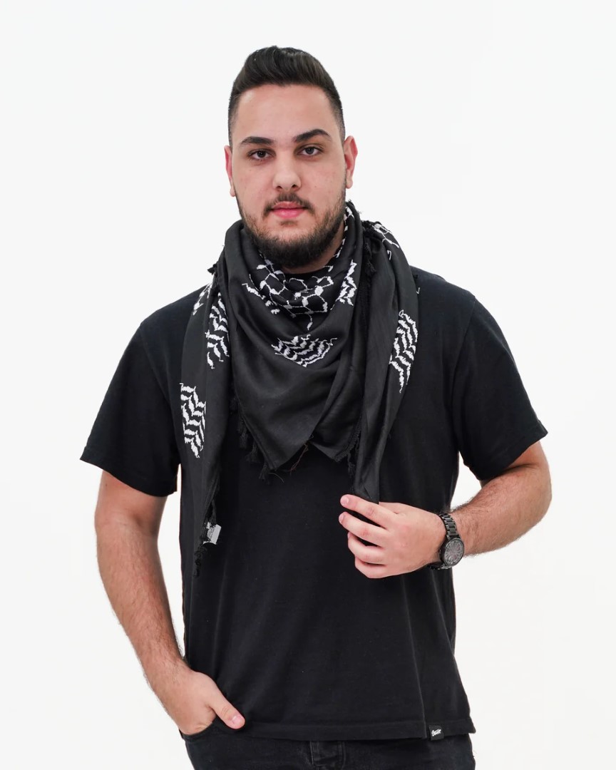 The Inverted Kufiya switches the traditional black and white colors, offering a modern and distinctive look while preserving the spirit and symbolism of the classic keffiyeh.